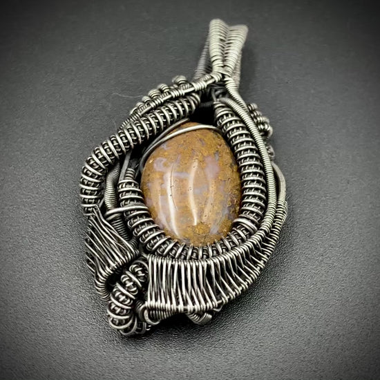This one-of-a-kind pendant is hand-wrapped with sterling silver wire, featuring a gorgeous jasper cabochon woven into the braided design. Embrace your inner dreamer with this powerful piece! Crafted with love in my 100% solar-powered off-grid silversmithing studio.