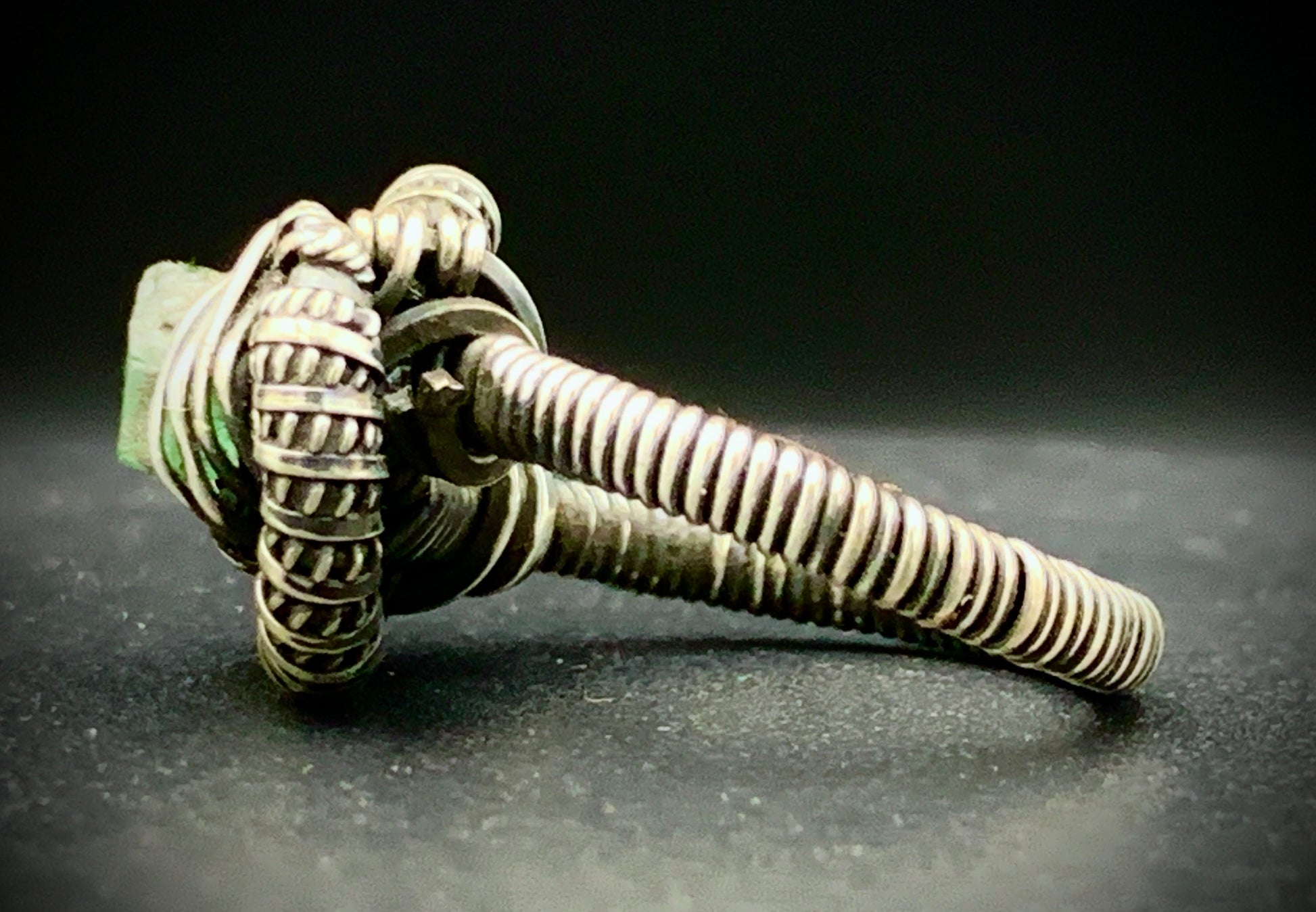This one-of-a-kind ring is hand-wrapped with sterling silver wire, featuring a gorgeous piece of raw peridot woven into the braided design. Crafted with love in my 100% solar-powered off-grid silversmithing studio. Size 7
