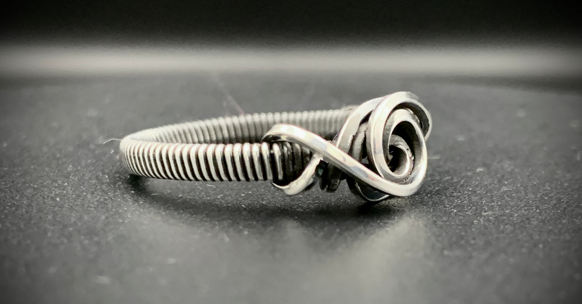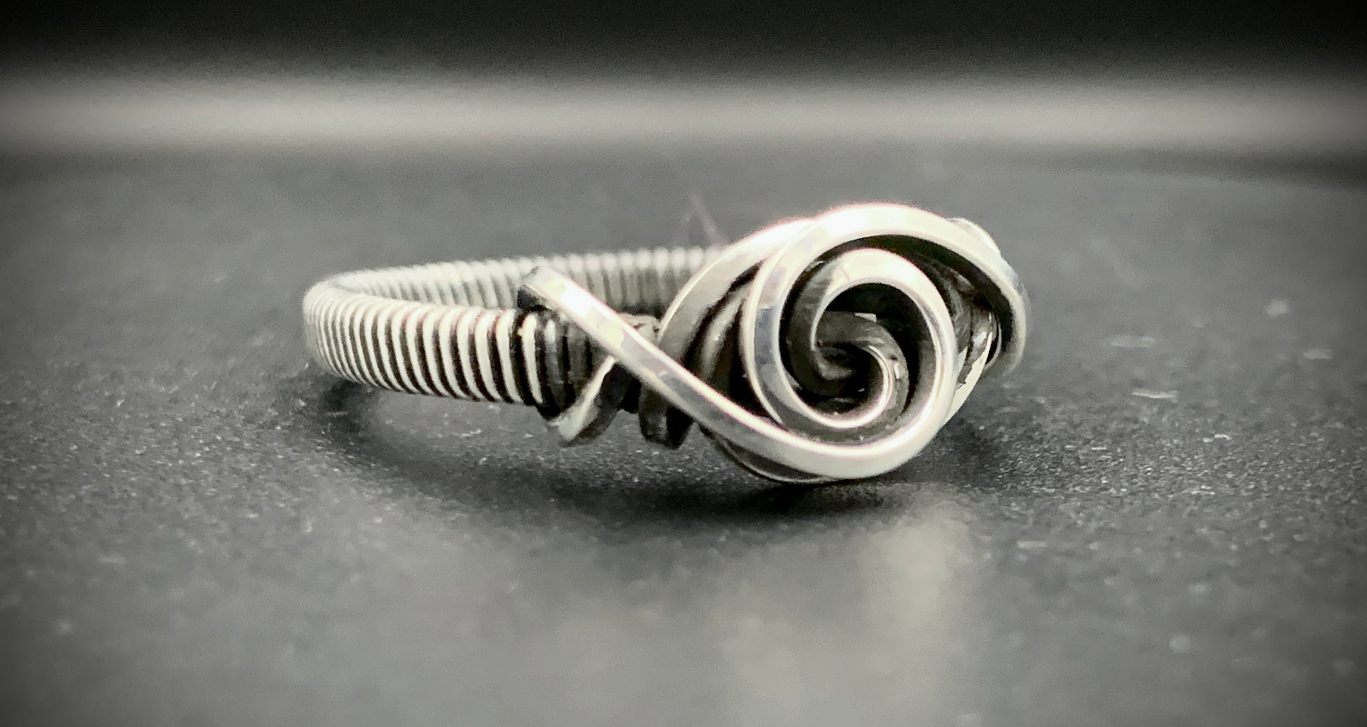 This one-of-a-kind ring is handmade from solid sterling silver, custom-crafted into a timeless piece of art that is made to last many generations. This design uses hand-wrapped silver wire to create a simple, elegant band that is very comfortable to wear. All wire material used in this piece was custom-crafted from hand-poured molten silver in my solar-powered, off-grid studio.