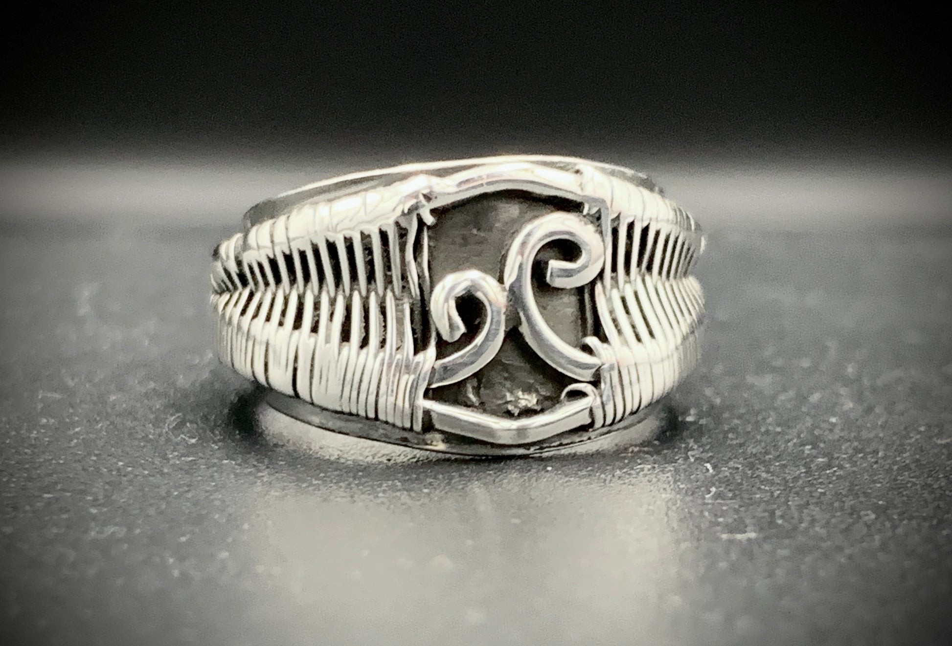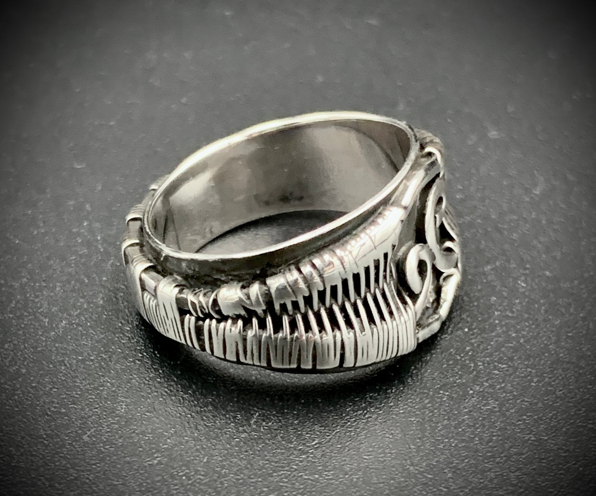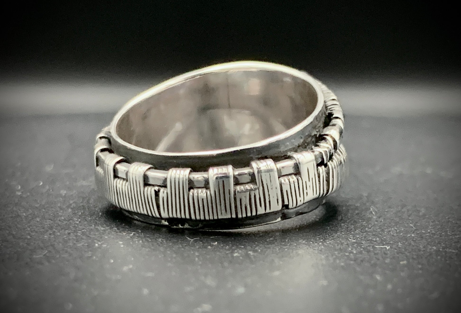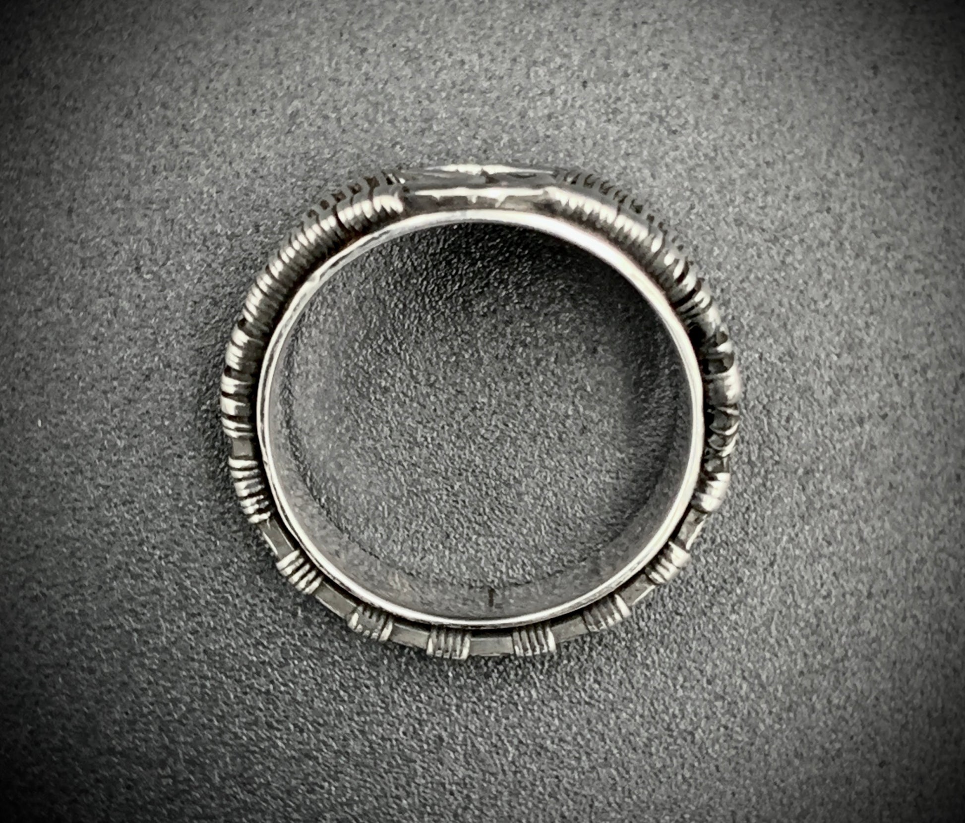 This one-of-a-kind ring is handmade from solid sterling silver, custom-crafted into a timeless piece of art that is made to last many generations. This design uses hand-woven silver wires soldered over a seamless band, making this ring full of interesting textures, yet extremely comfortable to wear! All wire and sheet material used in this piece was custom-crafted from hand-poured molten silver in my solar-powered, off-grid studio.
