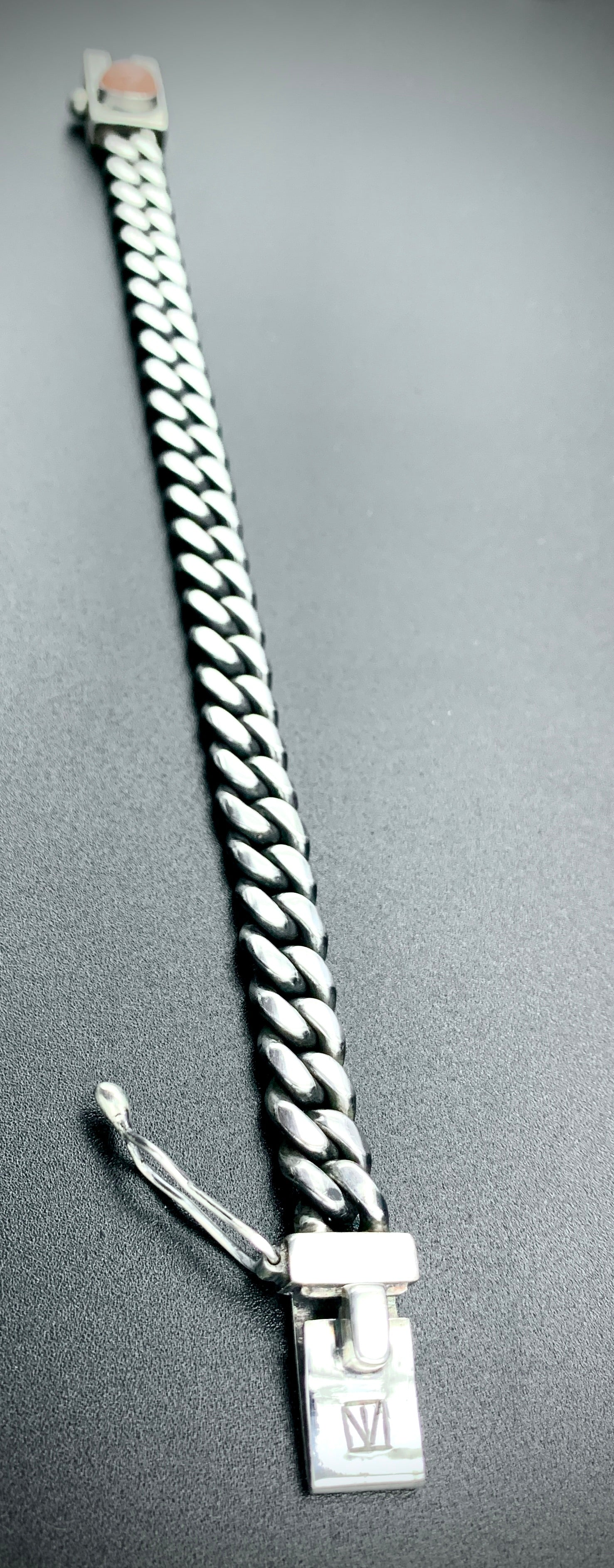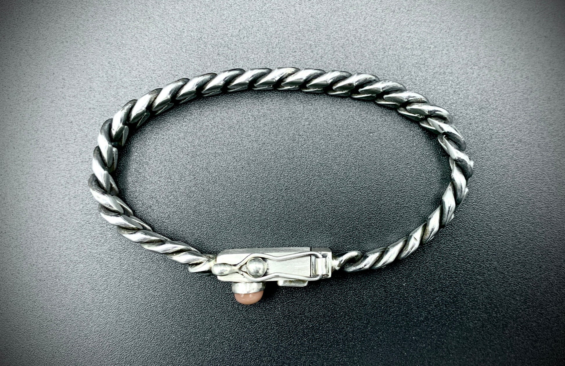 This is a modern spin on a classic Cuban link bracelet, full of character and dripping with style! All wire and sheet material used in this piece was custom-crafted from hand-poured molten silver in my solar-powered, off-grid studio. Includes a sturdy, hand-made box clasp with a safety closure, built to last a lifetime and beyond!