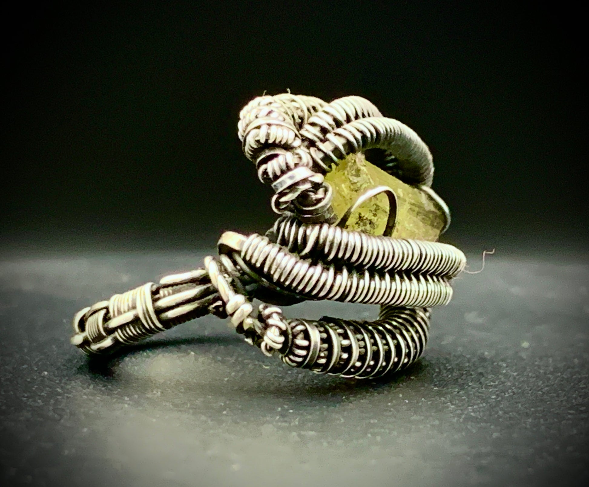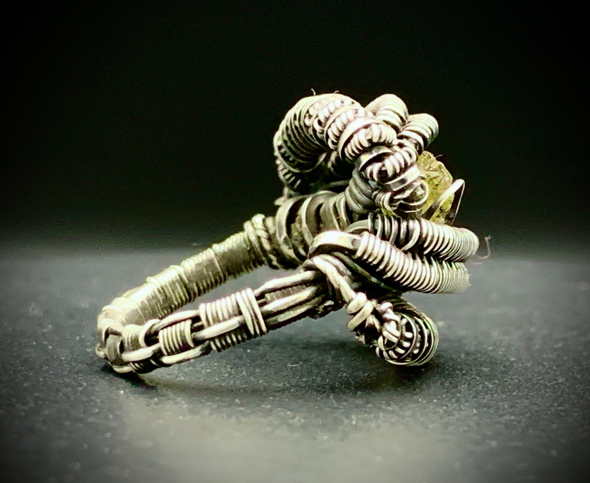 This one-of-a-kind ring is hand-wrapped with sterling silver wire, featuring a gorgeous piece of raw topaz woven into the braided design. Includes a unique, intricate weave-patterned band! Crafted with love in my 100% solar-powered off-grid silversmithing studio. Size 5.5