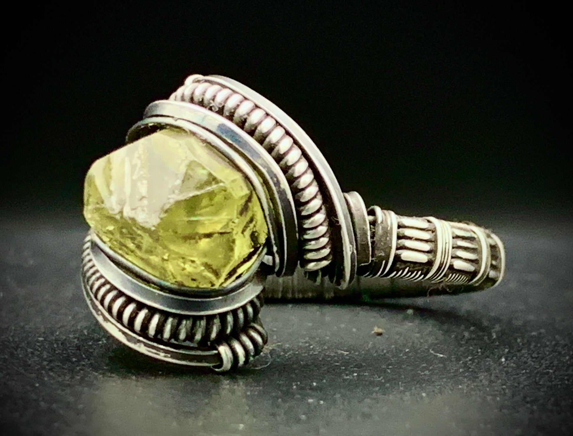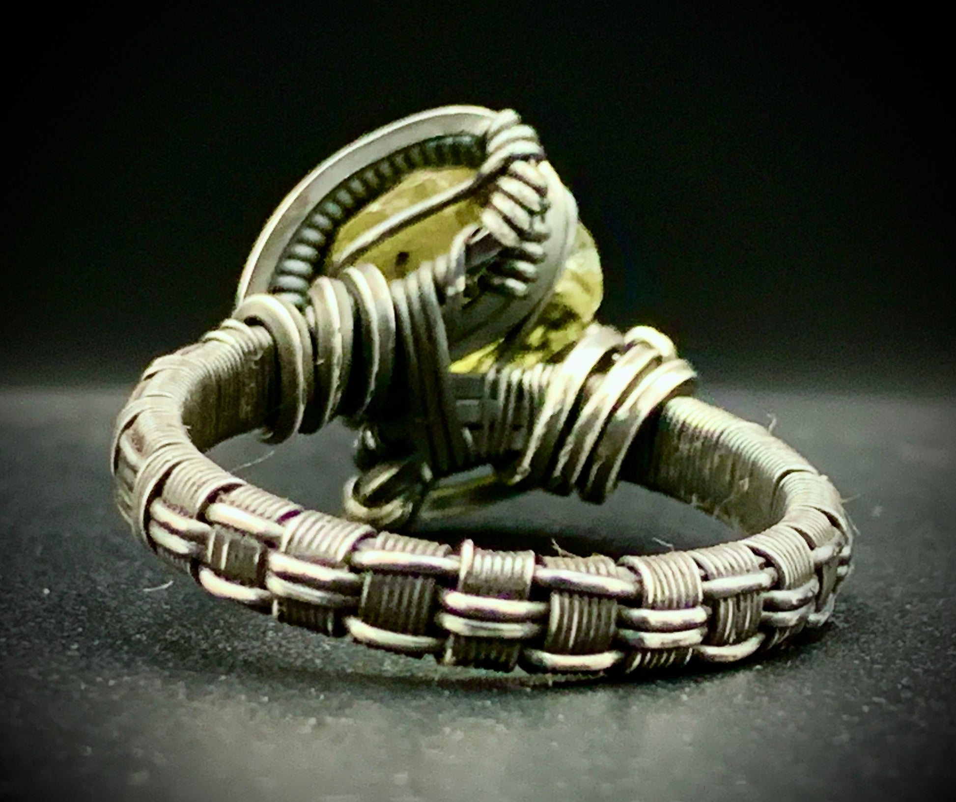 This one-of-a-kind ring is hand-wrapped with sterling silver wire, featuring a gorgeous piece of raw topaz woven into the braided design. Includes a unique, intricate weave-patterned band! Crafted with love in my 100% solar-powered off-grid silversmithing studio. Size 11.5
