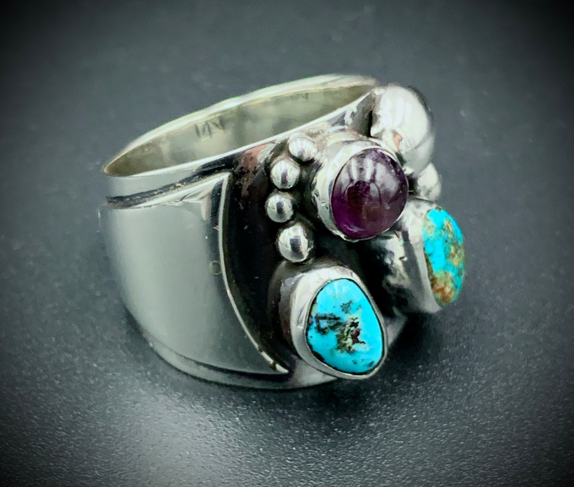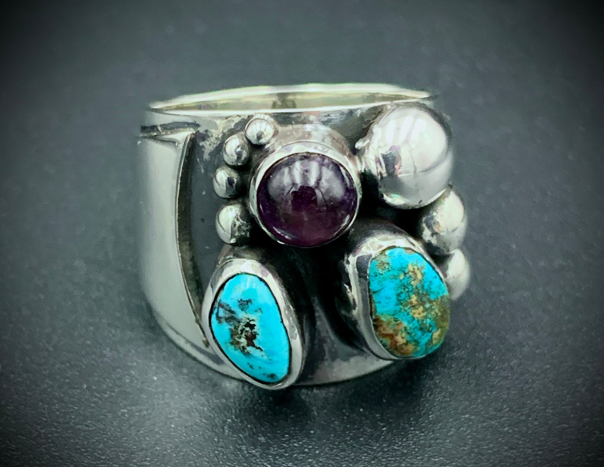 TURQUOISE & AMETHYST POWER RING - SIZE 8