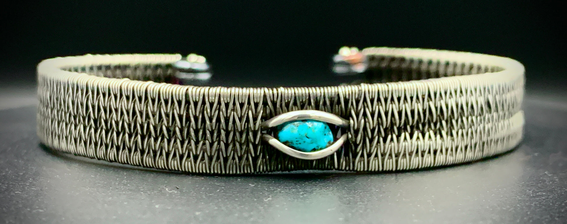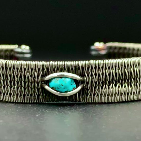 This one-of-a-kind bracelet is hand-wrapped with sterling silver and copper wire, featuring a gorgeous piece of raw turquoise woven into the braided design. Embrace the cosmic wisdom within you with this powerful piece! Crafted with love in my 100% solar-powered off-grid silversmithing studio. Fits a 7 to 8 inch wrist, can be adjusted to fit by gently opening or closing the cuff.