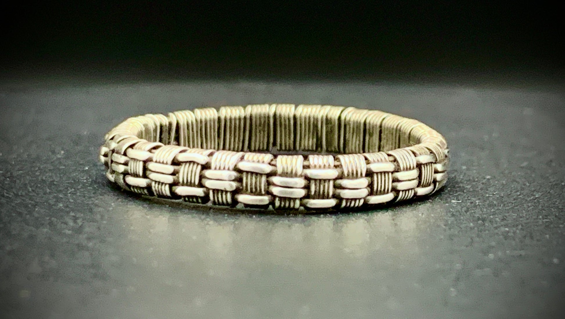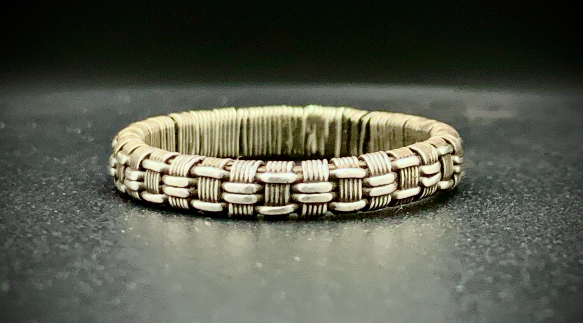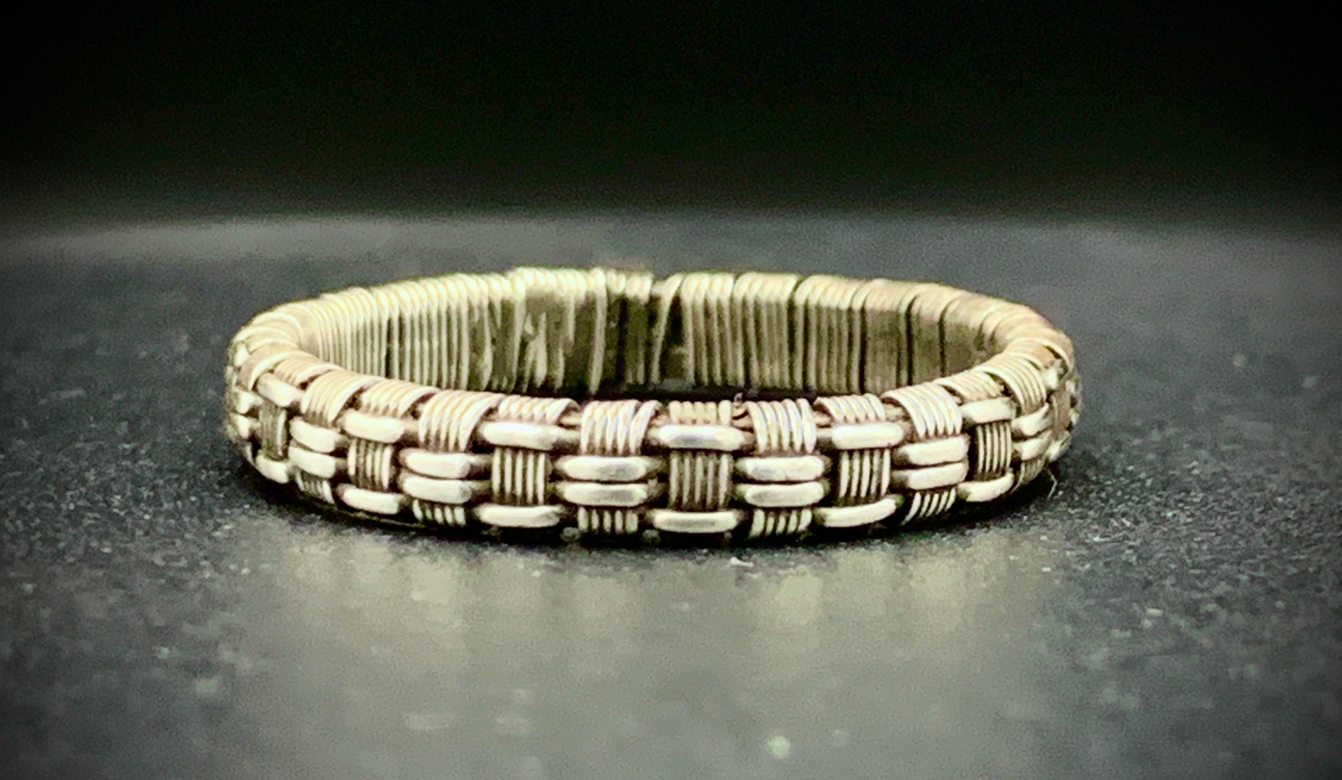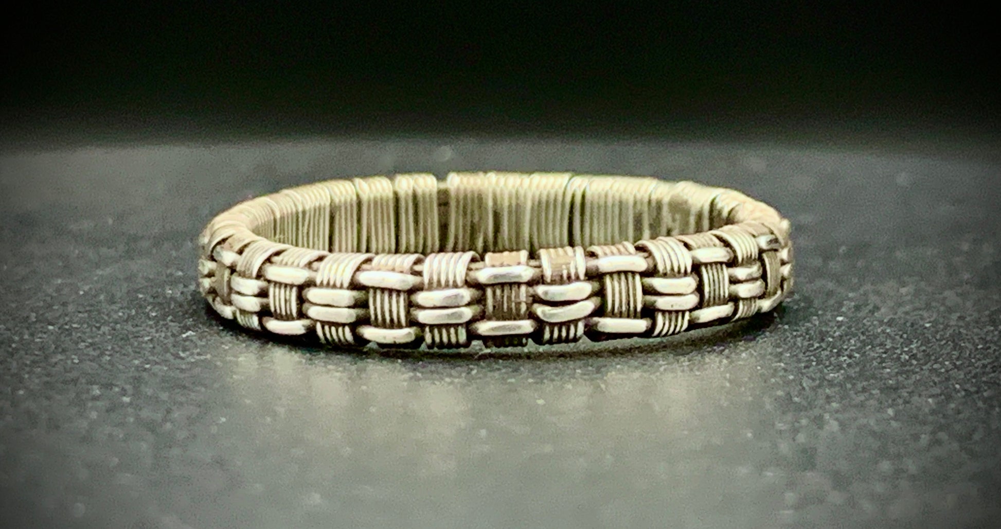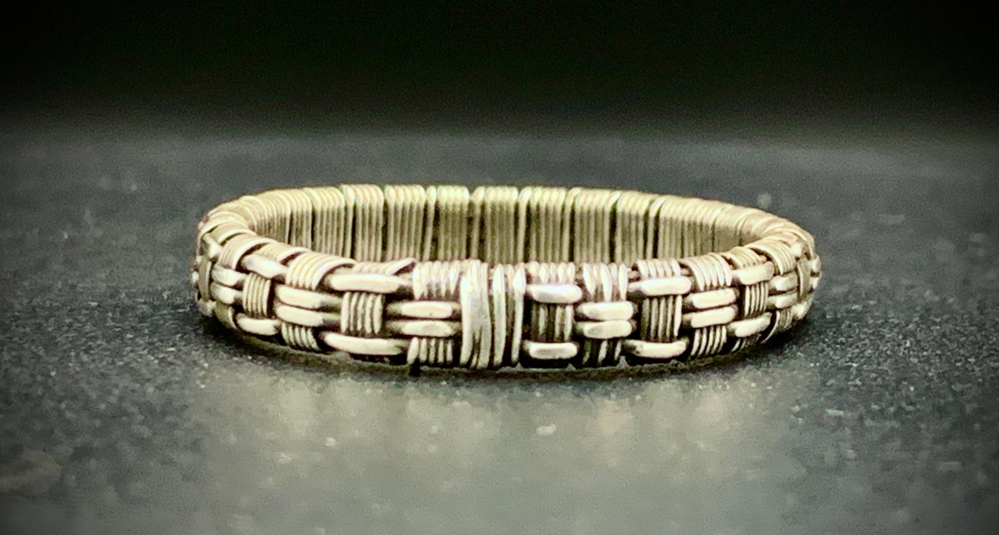 This one-of-a-kind ring is hand-wrapped with sterling silver wire, featuring a unique, intricate, seamless weave-patterned band! Crafted with love in my 100% solar-powered off-grid silversmithing studio. Size 12